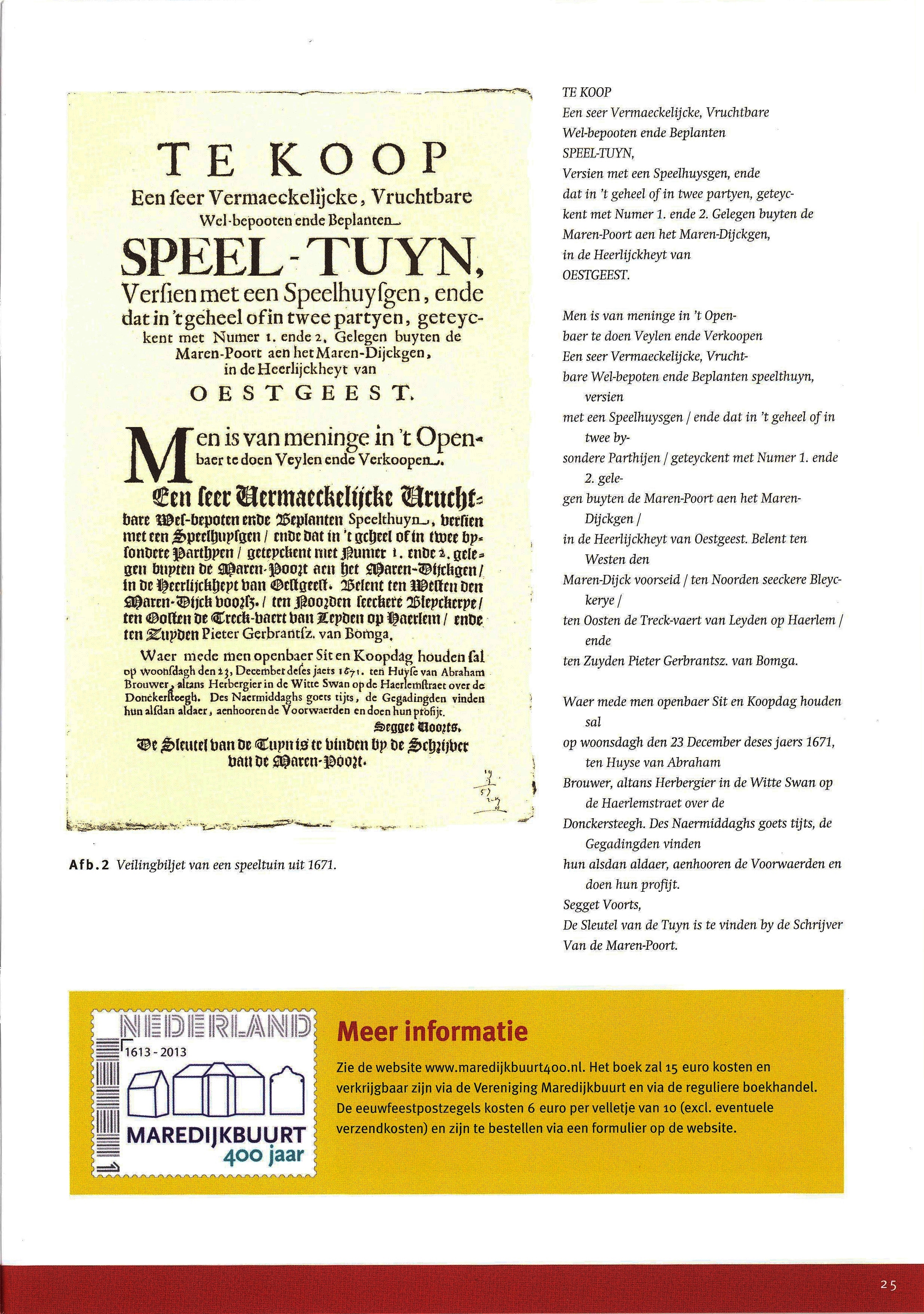 Een item op Dichtbij.nl over de Maredijkbuurt 400 jaar: de Poort is geopend op zondag 9 juni 2013