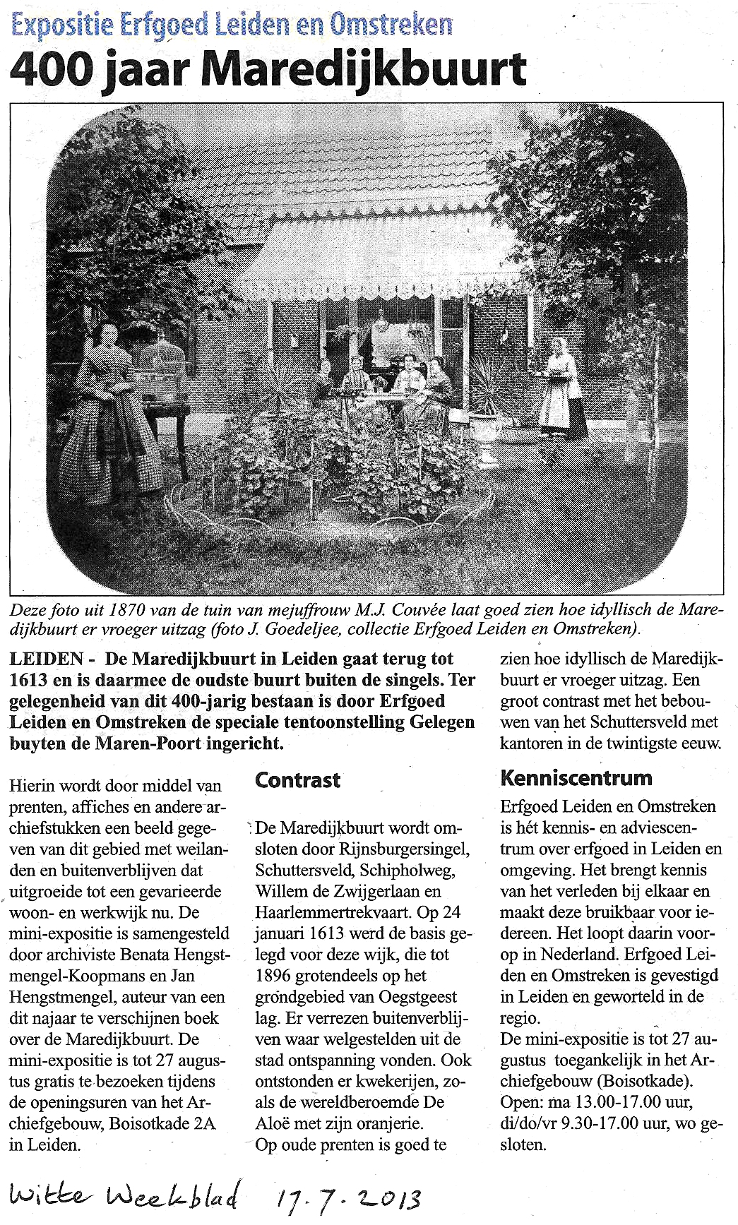Een artikel in het Leidsch Dagblad van zaterdag 8 juni 2013