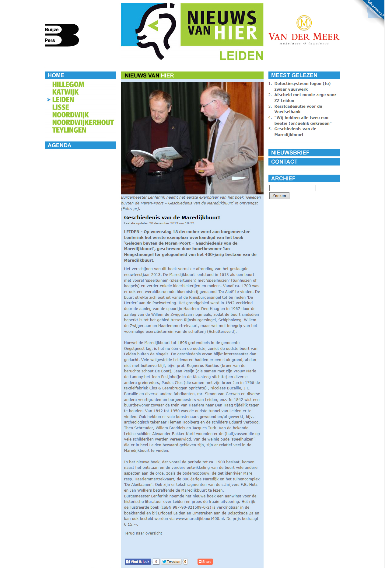 Een item in Leidsch Dagblad van donderdag 19 december 2013
