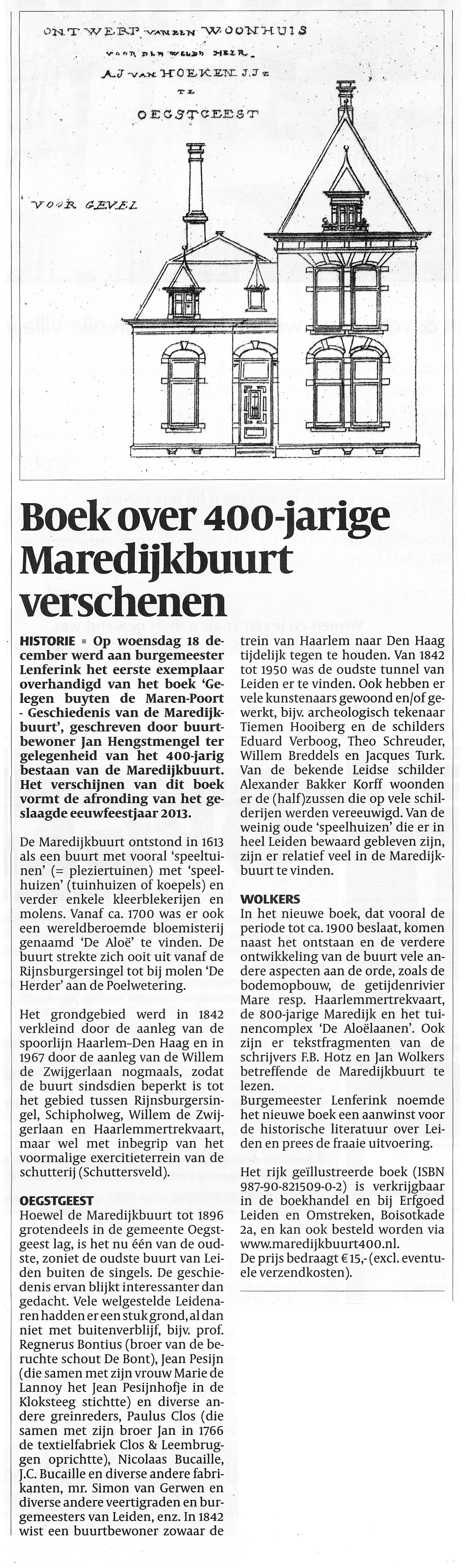 Het boek "Gelegen buyten de Maren-Poort' is op 18 december jl. verschenen. Ook dit bleef niet onopge[...]